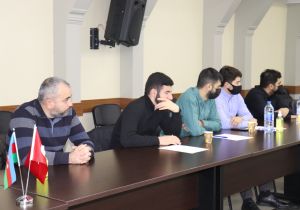 Tədbirin məruzəçisi, AMEA Tarix İnstitutunun aparıcı elmi işçisi, ADPU-nun dosenti Mübariz Ağalarlı “Azərbaycanda milli-mənəvi dəyərlər: tarixilik və müasirlik” mövzusunda çıxış edib. O, məsələyə tarixi aspektən yanaşaraq Azərbaycan xalqının qəhrəmanlıq salnamələrindən, dövlətçilik təcrübəsindən, türk xalqlarının ortaq cəhətlərindən danışıb. Azərbaycan bayrağının rənglərindəki ideoloji prinsiplərdən söz açan alim gənclər arasında mənəvi dəyərlərin təbliğinin vacibliyini qeyd edib.